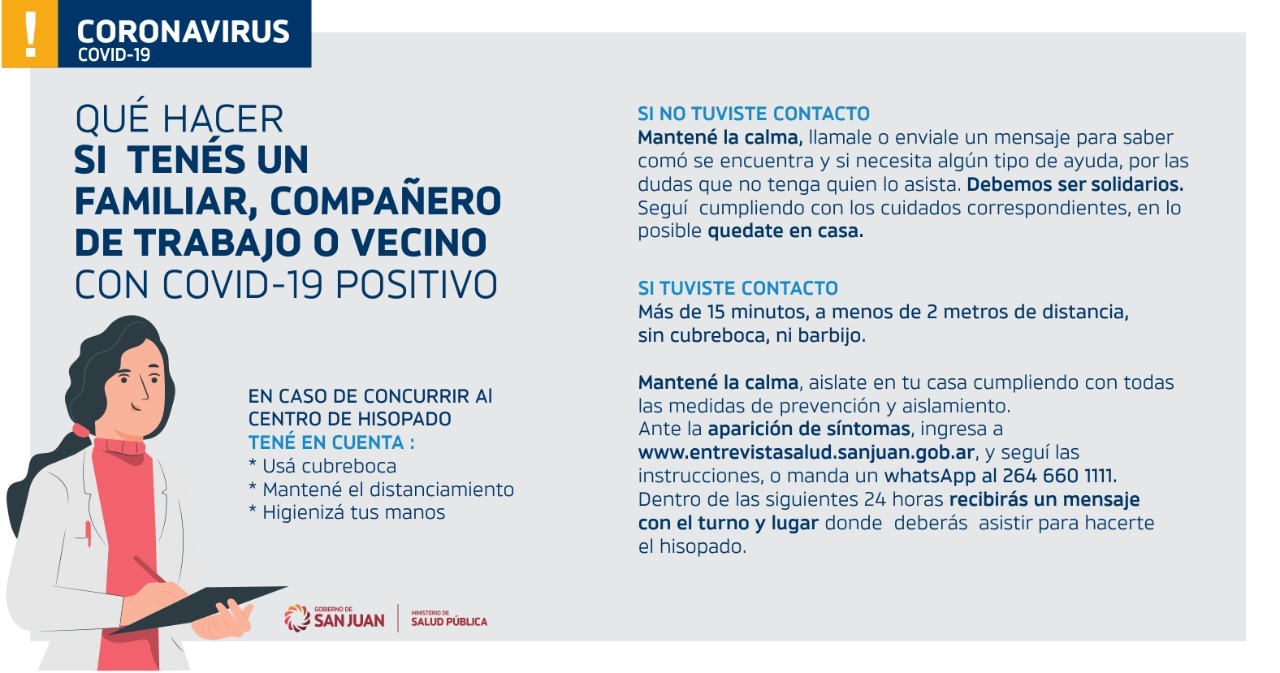 Con el crecimiento de los casos de coronavirus en San Juan se incrementaron las consultas de personas por tener alguna relación con ellos. Por eso, desde Salud Pública recordaron los factores a tener en cuenta a la hora de ser considerado contacto estrecho.