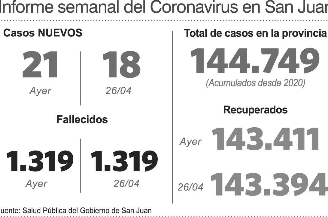 Los 17 nuevos casos surgieron luego de procesar 747 hisopados en toda la provincia y a lo largo de la semana, a un promedio de poco más de un centenar por día. Con estos datos, el acumulado de personas con covid asciende a 144.749, una cifra que en los últimos dos meses no ha mostrado grandes saltos en cantidad debido a que el impacto de la pandemia comenzó a perder fuerza tras el pico de la tercera ola, registrado en enero pasado.