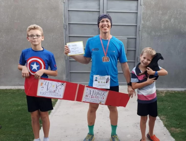 Hace algunos días, se anotó en el desafío mundial "Yo corro en casa challenge" que tuvo por objetivo recaudar dinero mediante la página www.albertjorquera.com y destinarla a la investigación de la vacuna contra el Covid-19. Darío fue el único sanjuanino que se sumó a esta concientización internacional y su familia fue testigo de sus 7 horas 14 minutos y 23 segundos corriendo.