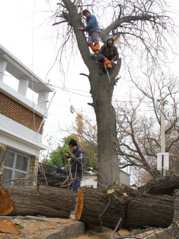 Tras la denuncia de los vecinos de la cuadra y del personal de Defensa Civil, que ahora funciona por calle España pasando General Paz, ayer, obreros de la Municipalidad de la Capital erradicaron un enorme árbol que estaba seco y a punto de desprenderse de su raíz. Desde la comuna dijeron que autorizaron este corte porque el árbol corría riesgo de caerse sobre las viviendas que hay en la zona.