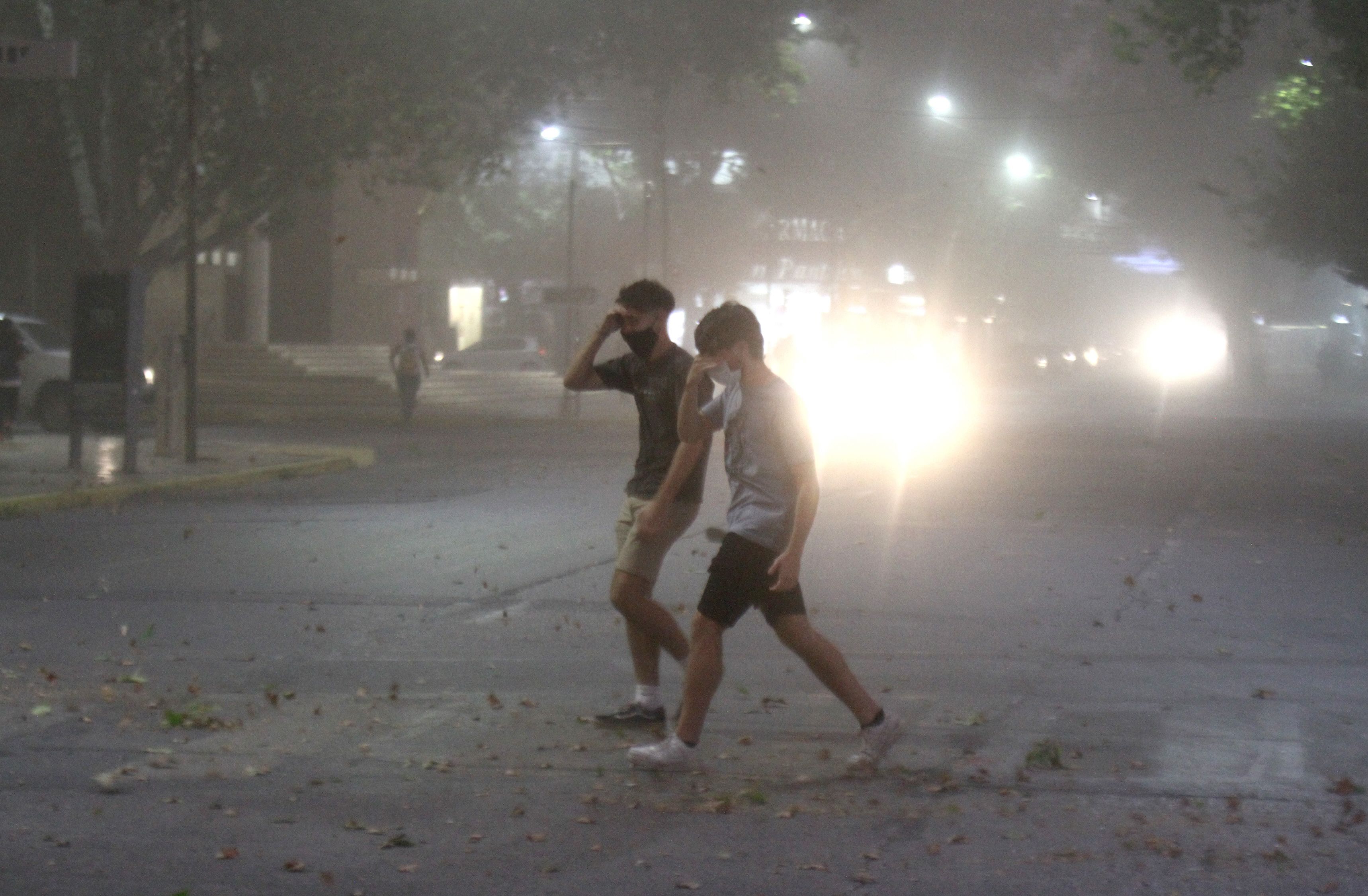 La nube de polvo, inmensa e intimidante, avanzó sobre la provincia desde el Sur y el viento llegó casi puntual, tal como lo habían pronosticado los especialistas. La tarde se hizo noche repentinamente y las fuertes ráfagas generaron complicaciones, fundamentalmente por cortes de luz en al menos siete departamentos (también bajas de tensión); a la vez que hubo caída de ramas y voladuras de techos livianos. En tanto que ante el alerta por vientos intensos, el Ministerio de Educación previamente había suspendido las clases en los turnos vespertino y nocturno.