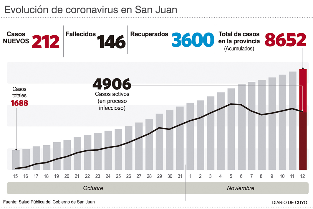 Noviembre muestra una tendencia que desde el primer deceso había sido una particularidad aislada, de personas fallecidas de no más de 45 o 46 años. El miércoles, de hecho, entre los cuatro decesos reportados ese día había un hombre de 39 y otro de 40 años. El martes murieron sanjuaninos de 41 y 45 años; el otro martes, el de la semana pasada, hubo un víctima tenía 46 y ayer, un hombre de 48, el de mayor edad en este grupo.