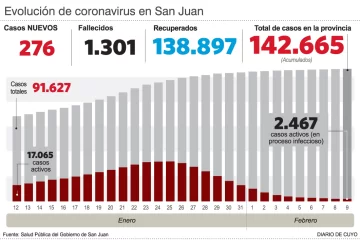 Según el parte del Ministerio de Salud, los fallecidos son un hombre de 80 años, oriundo de Rivadavia, quien permanecía internado en el Hospital Marcial Quiroga y una mujer de 43 años, de Rawson, internada en el mismo nosocomio. Además, se reportaron 276 nuevos contagios. También informaron que hay 54 internados, 20 de ellos en área crítica, una embarazada y siete niños con covid confirmado.