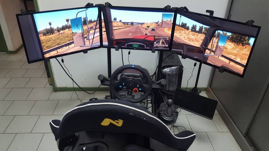 Este simulador tiene una pedalera con embrague, acelerador y freno; cambio con 6 velocidades y marcha atrás; comando para luces y señalización; y algunos elementos extras para inducir el sueño. “Dispone de una butaca como las que tienen los autos del TC, reclinable y cómoda, y tres pantallas que simulan largas y solitarias rutas por las que hay que conducir por 4 horas. Estas condiciones favorecen la somnolencia en el usuario lo que nos permitirá probar el dispositivo”, dijo Garcés.