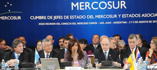 Cristina formuló estos conceptos en el marco de la 39a. Cumbre de Jefas y Jefes de Estado del Mercosur y Estados Asociados, que se celebra en el Centro Cívico de la capital sanjuanina.