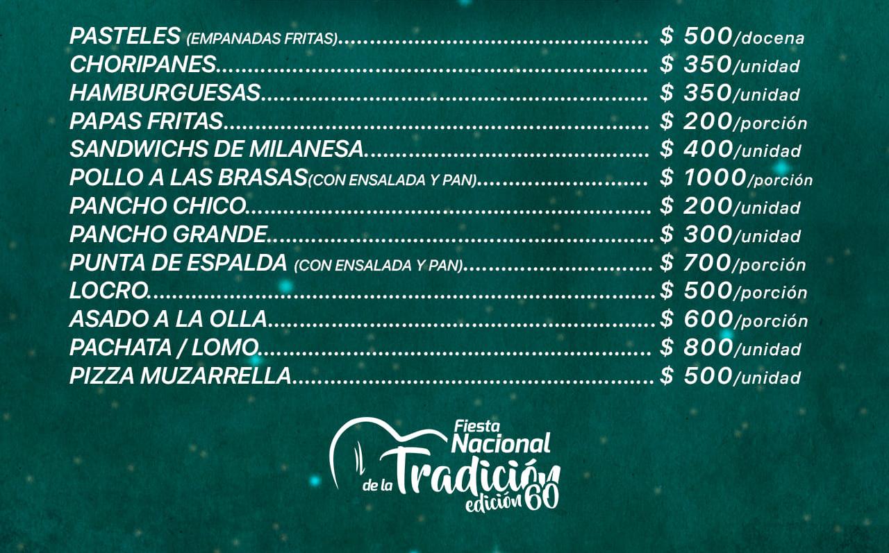 Mañana se dará inicio a la 60 edición de la Fiesta Nacional de la Tradición en Jáchal y desde la organización dieron a conocer un listado detallado con los precios de la comida.