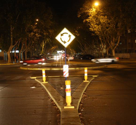 La rotonda que está en la intersección de Alem y Central, en Capital, se transformó en un desafío para las autoridades de la Municipalidad. Es que ya tuvieron que reformarla y colocarle señaléctica 4 veces con el objetivo de lograr mayor seguridad vial. La última reforma que le hicieron fue instalarle un juego de luces más visible que el anterior y colocarle cartelería reflectiva para que sea vista por los conductores, principalmente durante las noches.