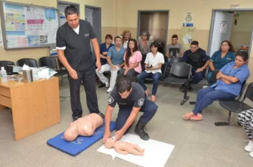 En el Centro de Salud del Barrio Cabot, Capital, se realizó un curso sobre Reanimación Cardio-Pulmonar destinado a empleados del lugar y efectivos de la División Motorizada Nro 1. Tras un video informativo, los participantes tomaron parte de un taller de práctica, con equipos, muñecos y maniquíes para RCP.