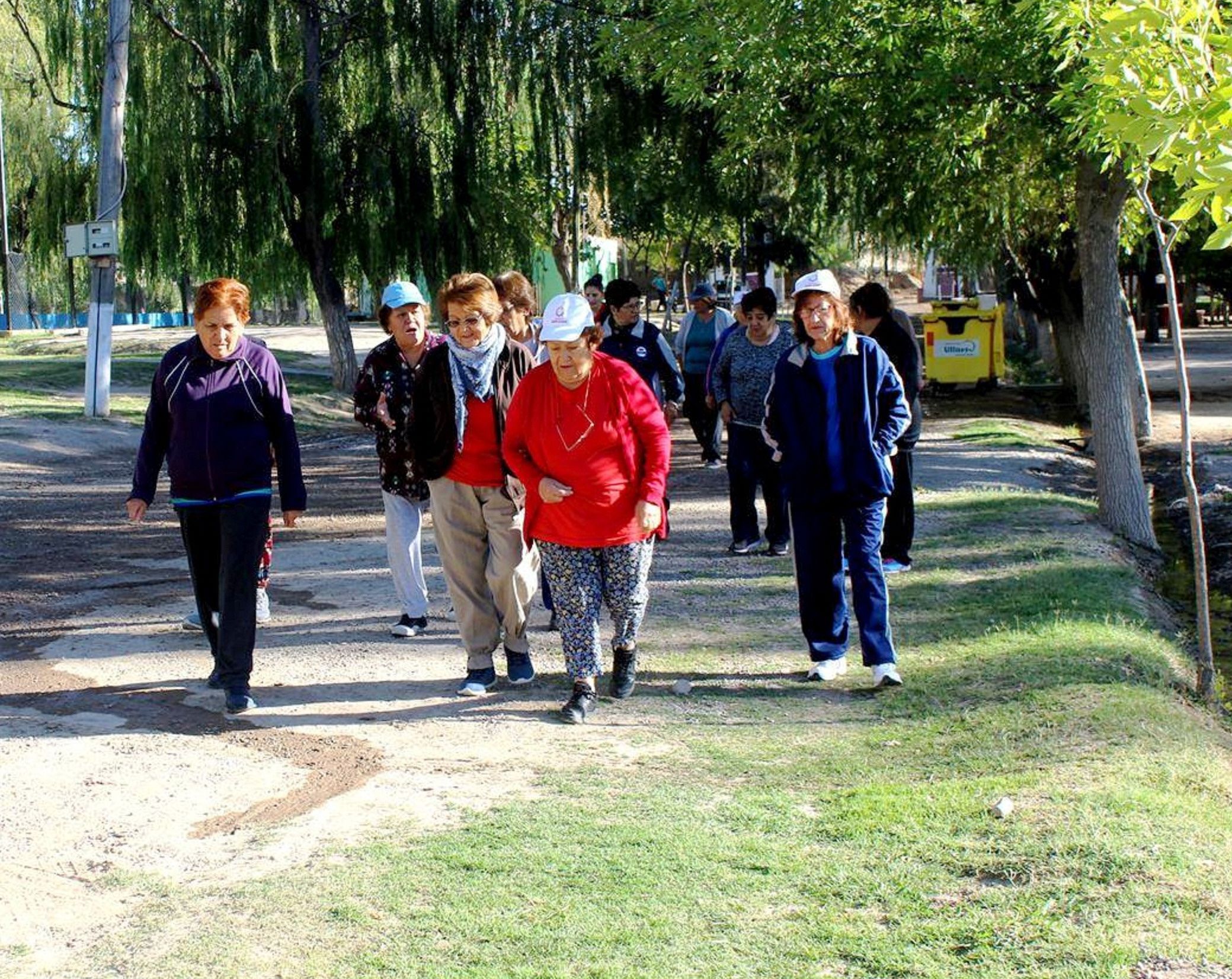 Coordinados por la profesora de educación física Solange Albornoz los abuelos realizan distintas actividades físicas como caminatas y gimnasia aeróbica, entre otras.