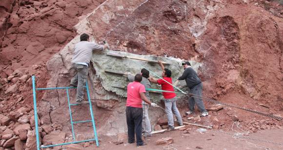 Tarde o temprano, dijeron los especialistas, las primeras huellas fosilizadas de dinosaurios descubiertas en San Juan van a perderse, pues están en zona de bajada de creciente en La Ciénaga, Jáchal. Para conservarlas tendrían que hacer una obra faraónica en una formación rocosa ubicada en medio de un lugar de difícil acceso. Por eso, un grupo de especialistas sanjuaninos acaba de concretar un paso clave para asegurarle este patrimonio a las generaciones venideras: obtuvo moldes de esos rastros, que permitirán reproducir réplicas para avanzar en la investigación y también para poder exhibirlas en un museo.