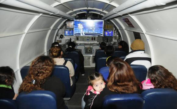 Una voz inicia la cuenta regresiva para el ascenso y en las 3 pantallas de enfrente se ve el humo que sale de la nave virtual. El habitáculo en el que están los espectadores eleva su punta y comienza a vibrar para el desarrollo de la misión: dejar un satélite en el espacio. Pero, antes de eso, los tripulantes vivirán peripecias que les harán temblar las piernas. Eso se puede sentir en el Discoverer, un simulador de cohete espacial que se mueve y usa tecnología 3D para que los pasajeros viajen a las estrellas imaginariamente. Ese dispositivo estará en Rawson todas las vacaciones de invierno.