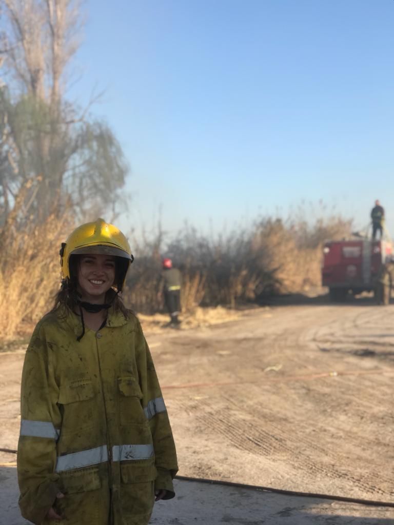 La chica no tardó en demostrar su entusiasmo y compromiso. En la mañana del 12 de agosto tuvo su debut en la calle. Salió en el camión a un incendio de pasturas cerca del Salón San Marino. "No pude actuar mucho porque soy aspirante, fui a ayudar a pasar las cosas y a dar apoyo", aclara. Pero ese mismo día en la noche tuvo un papel más determinante y que puso a prueba su empeño. "Estaba comiendo un asado cuando un amigo me manda una foto y me pone “ayuda”. Yo pensé que me estaba haciendo un chiste, pero después me mandó otra en la que el incendio se veía más grande. Ahí le dije a Maxi, que estaba conmigo, que qué le parecía que fuésemos. Nos vinimos al cuartel y fuimos al incendio, que era en Balcarce y Roque Sáenz Peña", recuerda entre risas, lejos de tomarlo como una anécdota tediosa.