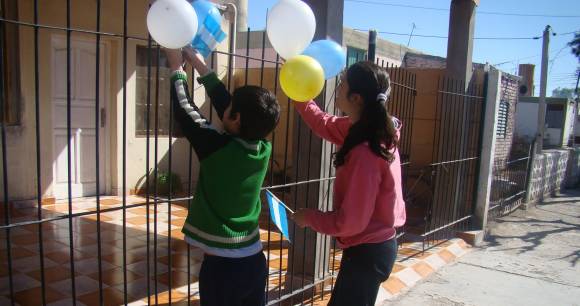 Los jóvenes y niños de la villa cabecera del departamento van a poner banderas, globos y gallardetes en los frentes de las viviendas y esperan también la colaboración de algunos vecinos.