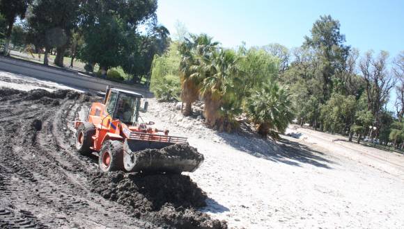 Por otro lado, el trabajo en el lago será largo, ya que los sondeos que se hicieron indicaron que hay en promedio medio metro de altura de barro antes de llegar a la base. Además, una vez que termine este trabajo, se aprovechará para reparar las paredes del estanque, colocar otra boca de desagüe y reparar los geisers (el sistema de iluminación de ambos y la bomba de uno de ellos). Recién entonces se iniciará la carga del lago, con agua del surgente ubicado en el costado Norte, sembrar peces y volver a poner los patos y gansos, que esperan en Media Agua.