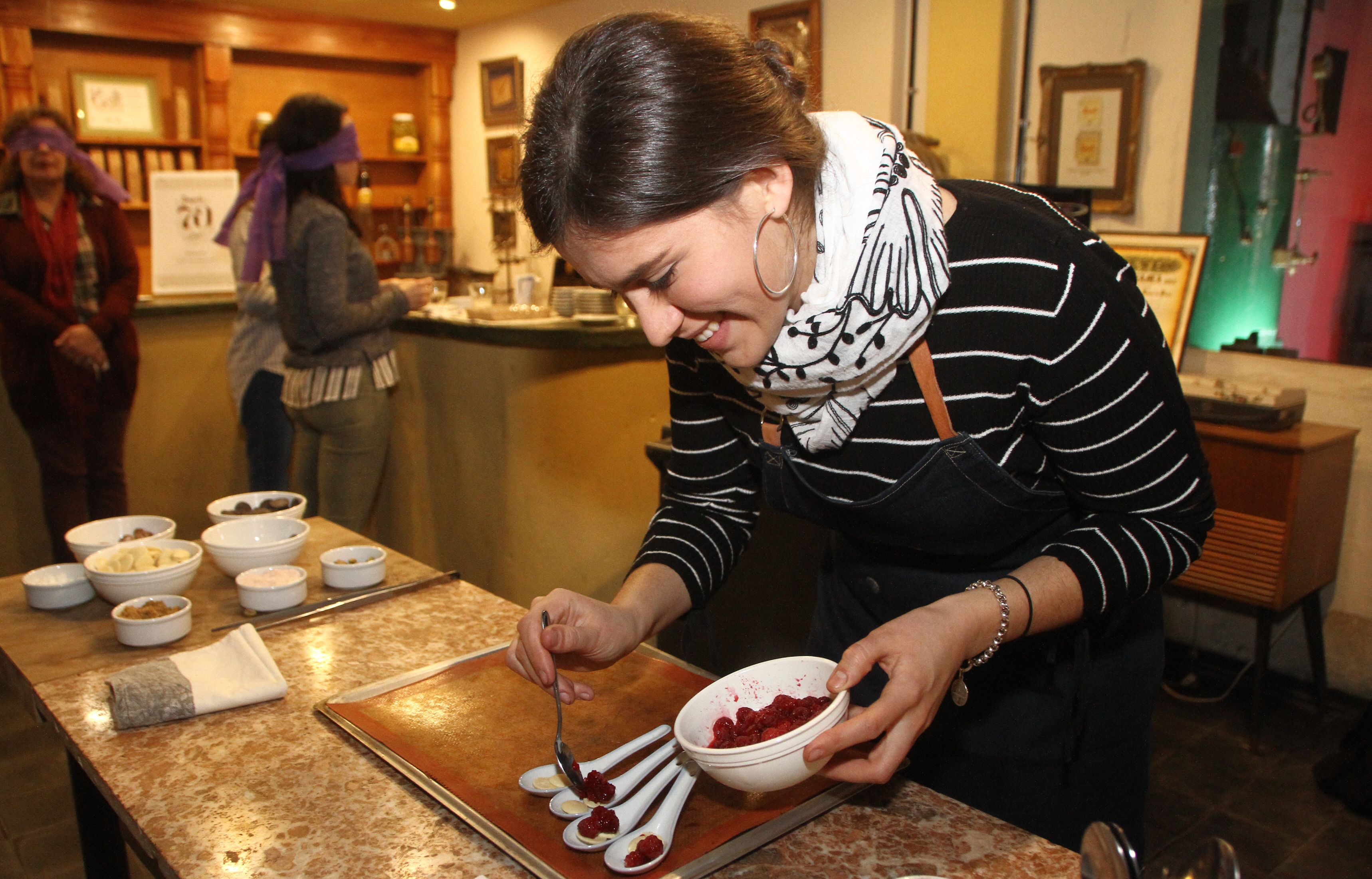 Cada cuchara posterior representaba un nuevo desafío, que todos aceptaban con gran gusto, al punto que nadie se sacó su venda en alguna pausa. Muy pocos comentarios internos en cada grupo. Simplemente todos, sin verse -a excepción de la chef y su grupo de trabajo- mantenían una charla colectiva aunque no sabían sus nombres. "Pistachos", "sal rosa", "coco", "azúcar mascabo". Todas las combinaciones terminaron siendo descubiertas por alguno de los participantes. La que más tiempo costó dilucidar no fue la primera, sino la última. "Frambuesa", acertaron finalmente. Mientras trataban de hacerlo, ya habían acordado que su acidez combinada con chocolate blanco era tan espectacular como lo que habían ido experimentado antes.