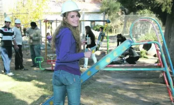 A la cruzada la hizo completa. En la primera acción del grupo solidario que creó Ana Paula Zabala, la Reina Nacional del Sol, fue a pintar ayer parte de una escuela, la Miguel de Cervantes Saavedra, de Alto de Sierra. Y será en la amplia galería, tras dos días de trabajo, que la rubia festejará hoy su cumpleaños número 20 con chocolate y torta, junto a los alumnos, padres y maestros.