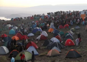 Este año subió menos gente que en otras ediciones, pero fue por los pronósticos de mal clima, algo que no se cumplió completamente. Por la tarde del sábado el viento y la lluvia amenazaron con complicar la jornada. Pero por la noche, la impactante Luna llena hizo que los peregrinos subieran hasta sin linternas.