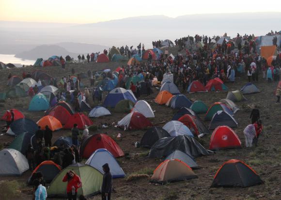 Los más osados subieron el cerro el miércoles. Aunque hubo gente subiendo hasta el domingo por la madrugada. La misa se hizo a las 8, cuando el Sol comenzó a despuntar y este año sí la dio monseñor Alfonso Delgado quien le dio fuerza a los chicos para que pudieran descender.