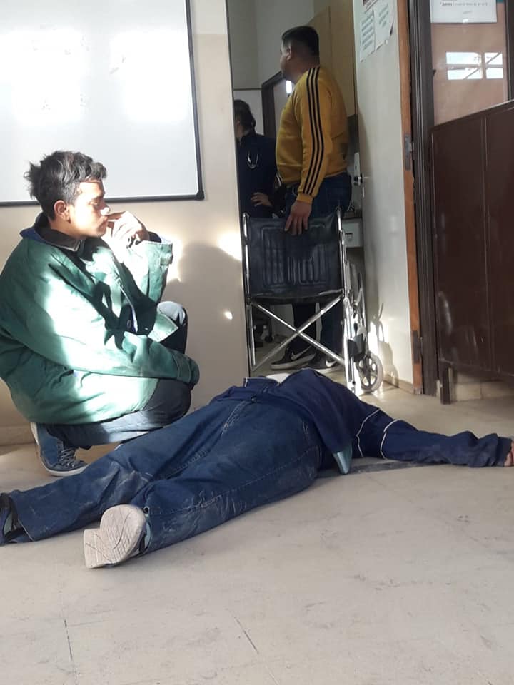 La postal es tristísima, uno de los comentarios a la publicación lo retrata bien: “miren al doctor con las manos en la cintura y al de la silla de ruedas, esperando que se muera la mujer”. Si bien la situación, al parecer, no pasó a mayores y no se barajó ninguna posibilidad de muerte, el complejo estado de la atención médica despertó la indignación de los vecinos del barrio cercano a la institución médica.