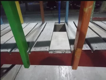 “Esto sucedió hace más de una semana. Eran como las 23 y mi hija más chiquita siguió a su hermana y se subió cuando me acerqué a bajarla vi cómo caía por el hueco. Tuve que sacarla porque quedó enganchada boca abajo. Cuando la miré vi que le salía sangre de la nariz y la boca, nos asustamos muchísimo. Tuvimos suerte”, reveló la mujer sobre el episodio que vivió en la plaza principal, ubicada frente a la Municipalidad.