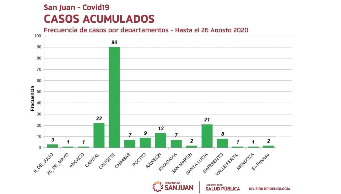 – Valle Fértil: 1 (no tiene casos actualmente, sino que se trata de un caso importado y recuperado)