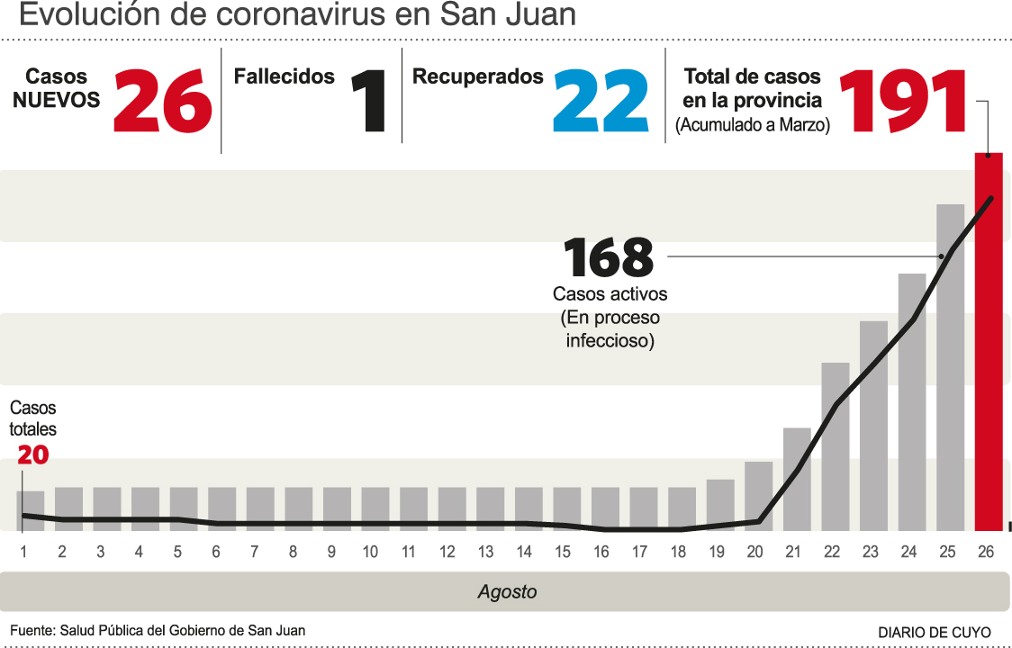 “Es importante que pese a las circunstancias prime la dignidad humana”, resumió Fabiola Aubone, la ministra de Gobierno, sobre la normativa para permitir que los pacientes terminales con Covid-19 puedan estar acompañados por alguno de sus familiares en la etapa final de sus vidas. Garantizar el derecho de decir adiós es la base para poder darle un trato humanitario a estas personas, que de acuerdo al protocolo actual permanecen aisladas en la internación y así pueden morir. Por otro lado, en el sexto día de Fase 1, San Juan acumula 191 casos, luego de que ayer fueron notificadas 26 personas con coronavirus.