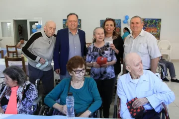 El ministro de Desarrollo Humano y Promoción Social, Armando Sánchez, acompañó este jueves a los 31 abuelos residentes del Hogar Eva Duarte en la celebración de su natalicio. Como una actividad ya instalada, la residencia de adultos mayores agasajó a quienes cumplieron años en los meses de septiembre, octubre y noviembre. Los abuelos compartieron un rico desayuno, torta y obsequios.