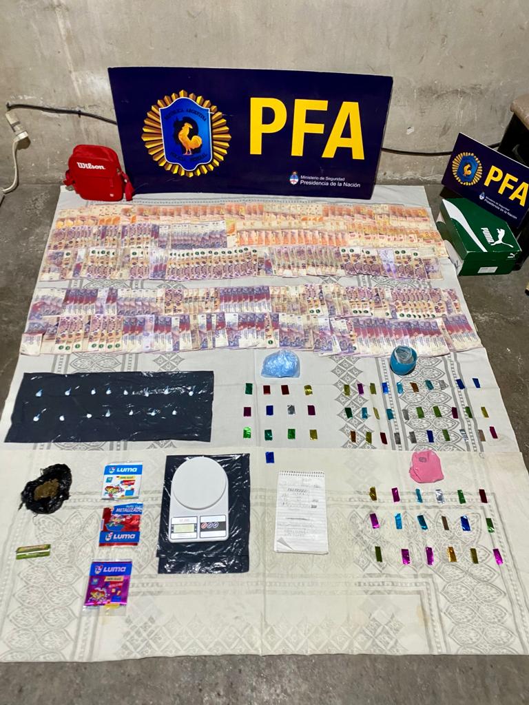 Las fuentes indicaron que hallaron más de 75 dosis de cocaína para su venta, marihuana, dinero en efectivo producto de las ventas ilegales, como así también elementos para fraccionamiento de droga.