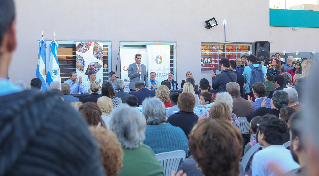 El gobernador Uñac al dirigirse a la comunidad dijo que “es un hecho destacable que una construcción que se hizo en la gestión anterior, nacional, provincial y municipal, pueda ser inaugurada por los funcionarios que les sucedieron a quienes iniciaron la obra, es muy importante”.