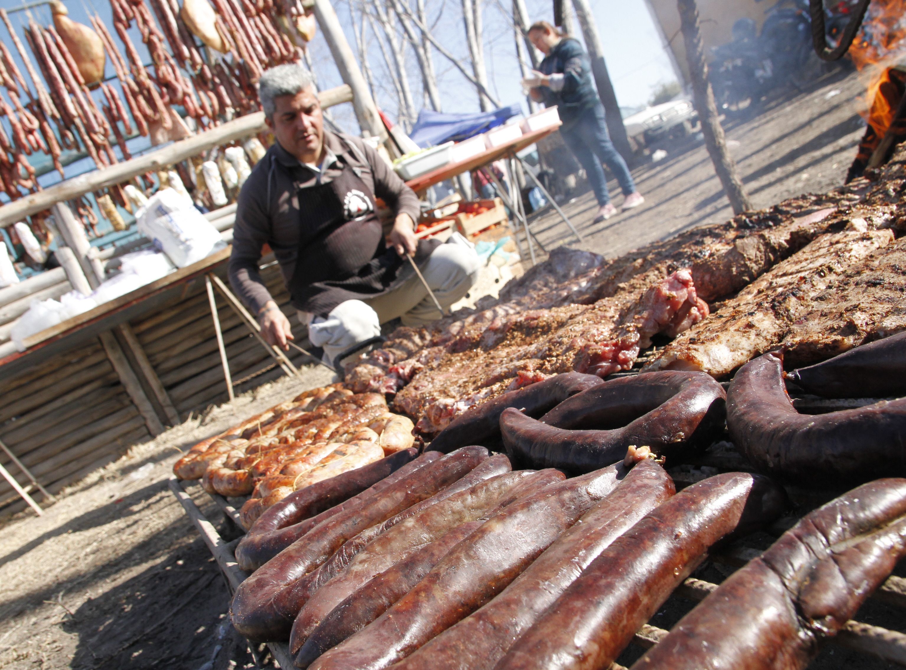 Asados. En muchos puestos, además de los embutidos crudos vendieron la comida ya asada.