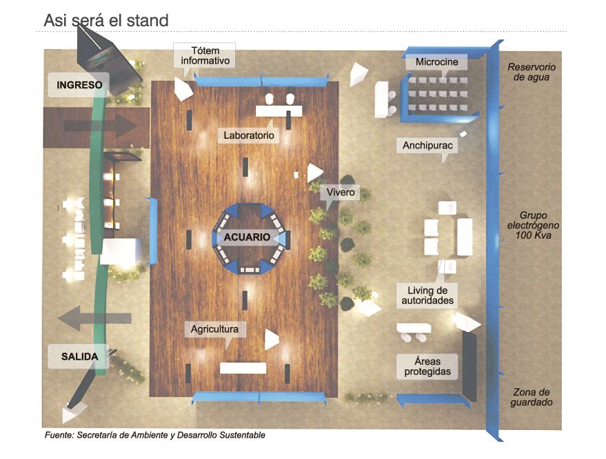 Uno de los atractivos principales será el acuario gigante que instalará la Secretaría de Ambiente y Desarrollo Sustentable en el stand que llevará el nombre de Biodiversidad y su Evolución. Con esto se buscará mostrar parte de las tareas que lleva adelante el Parque de la Biodiversidad, que funciona en El Pinar, Rivadavia. Este acuario tendrá dimensiones extraordinarias (25 metros cuadrados por 2,45 metros de alto) y estará formado por 10 peceras, en las que se exhibirá una gran cantidad de peces marinos como Ocelaris o Damicela; carnívoros como Pez León o Tiburón Mambo; especies amazónicas como Raya Motoro y Pirañas; anfibios invertebrados como Langosta, y además de peces africanos y asiáticos. A esto se sumará una réplica del Laboratorio de Limnología para que el público pueda aprender sobre la reproducción de peces que diariamente se realiza en el Parque. Además, se mostrará también las actividades que se desarrollan en el Vivero de Plantas Nativas.