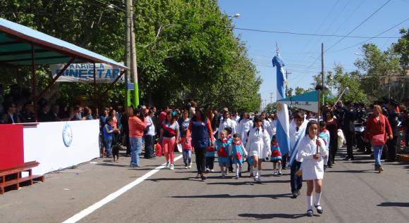 Con la delegación de la escuela José María de Los Ríos (fundador de Caucete) a la cabeza, uno a uno pasaron frente al palco oficial los alumnos de 45 establecimientos. Es decir que no se quedó afuera ninguna escuela caucetera y desafilaron hasta los chicos que van a clases en Vallecito, Marayes y Las Chacras.