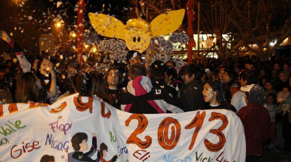 Los chicos de la Escuela de Comercio Manuel Belgrano trabajaron durante toda la semana para lograr su objetivo: cargar 3 changos de supermercado con bolsas repletas de papel picado para arrojar frente al palco y hacerse notar. Y lo lograron. Tanto el jurado como el público los aplaudió por la ocurrencia. Esto sucedió en el Carrusel de la Juventud, en Caucete, en el que participaron los alumnos del último año de las 6 escuelas secundarias del departamento. El evento se llevó a cabo anoche, por Diagonal Sarmiento, y ante la presencia de unos 4.000 espectadores, según los datos proporcionados por los organizadores.