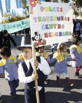 Con la misma intención, algunos docentes recurrieron a la imaginación para mantener a los chicos ordenados durante la marcha. Los hicieron desfilar portando una larga Bandera argentina o tomados de una cinta albiceleste. De todos modos la táctica no fue cien por ciento efectiva, ya que algunos pequeños rompieron filas para ir a saludar a sus padres que estaban entre el público.