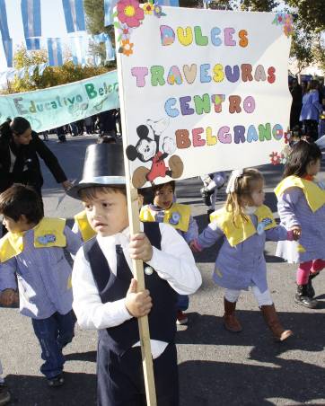 Muy pocos chicos desfilaron con zapatos escolares. La mayoría usó zapatillas para caminar con comodidad y no demorar demasiado la marcha. Pero no todos lograron este objetivo. Es que en el desfile participaron los niños de 2 años y que todavía tambalean al caminar. Es por este motivo que muchos padres también desfilaron y llevaron a sus hijos de la mano, para lograr que completaran todo el trayecto sin distracciones.