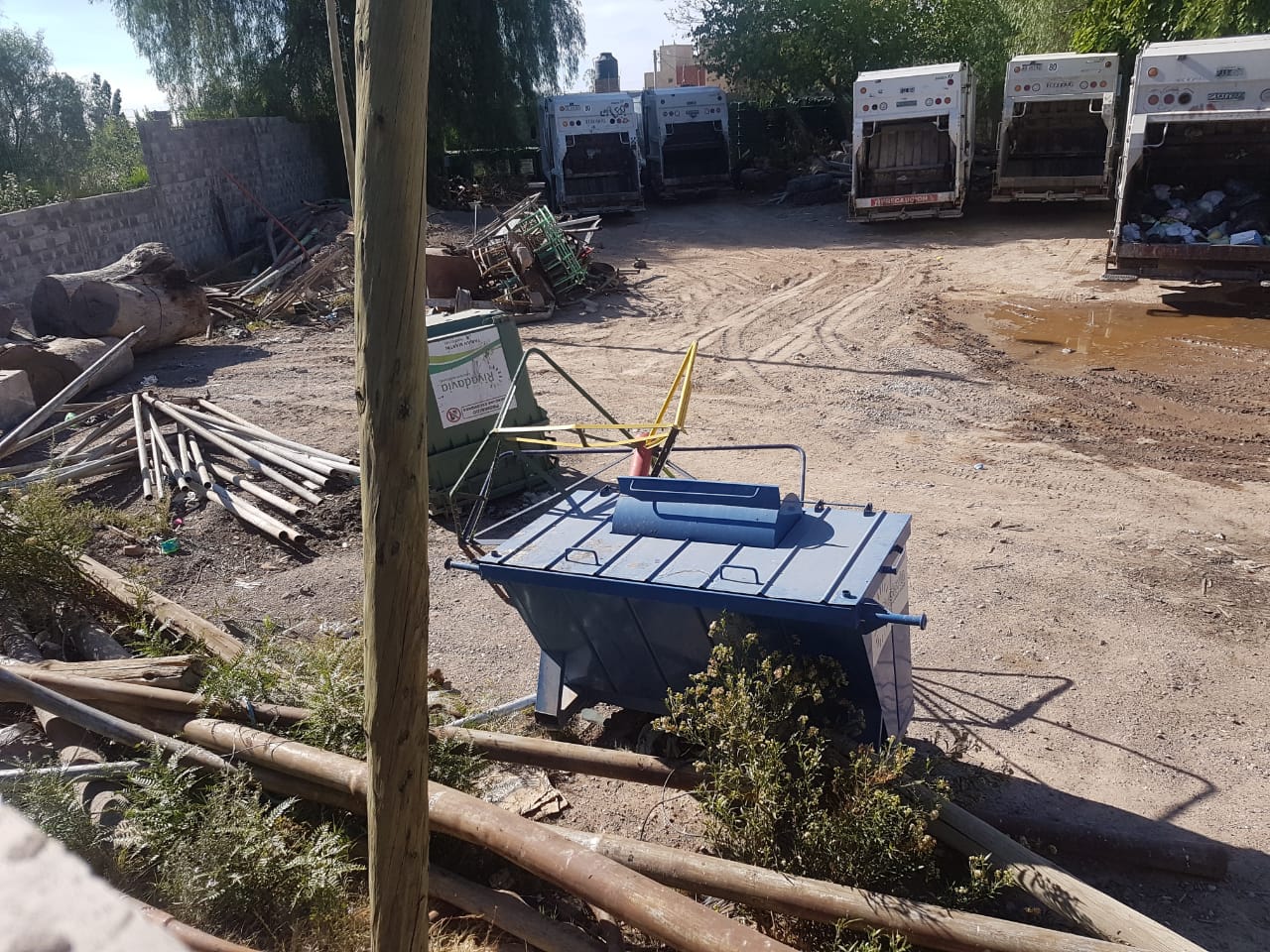 Desde comienzos de 2016 se instaló en calle Meglioli 1428 Sur el Obrador Municipal de Rivadavia. Un espacio que, antiguamente, estaba destinado al vivero del departamento y contaba con una pequeña oficina técnica. No hubo ningún inconveniente hasta el momento en que se decidió darle una nueva función: depósito de camiones recolectores de residuos domiciliarios.