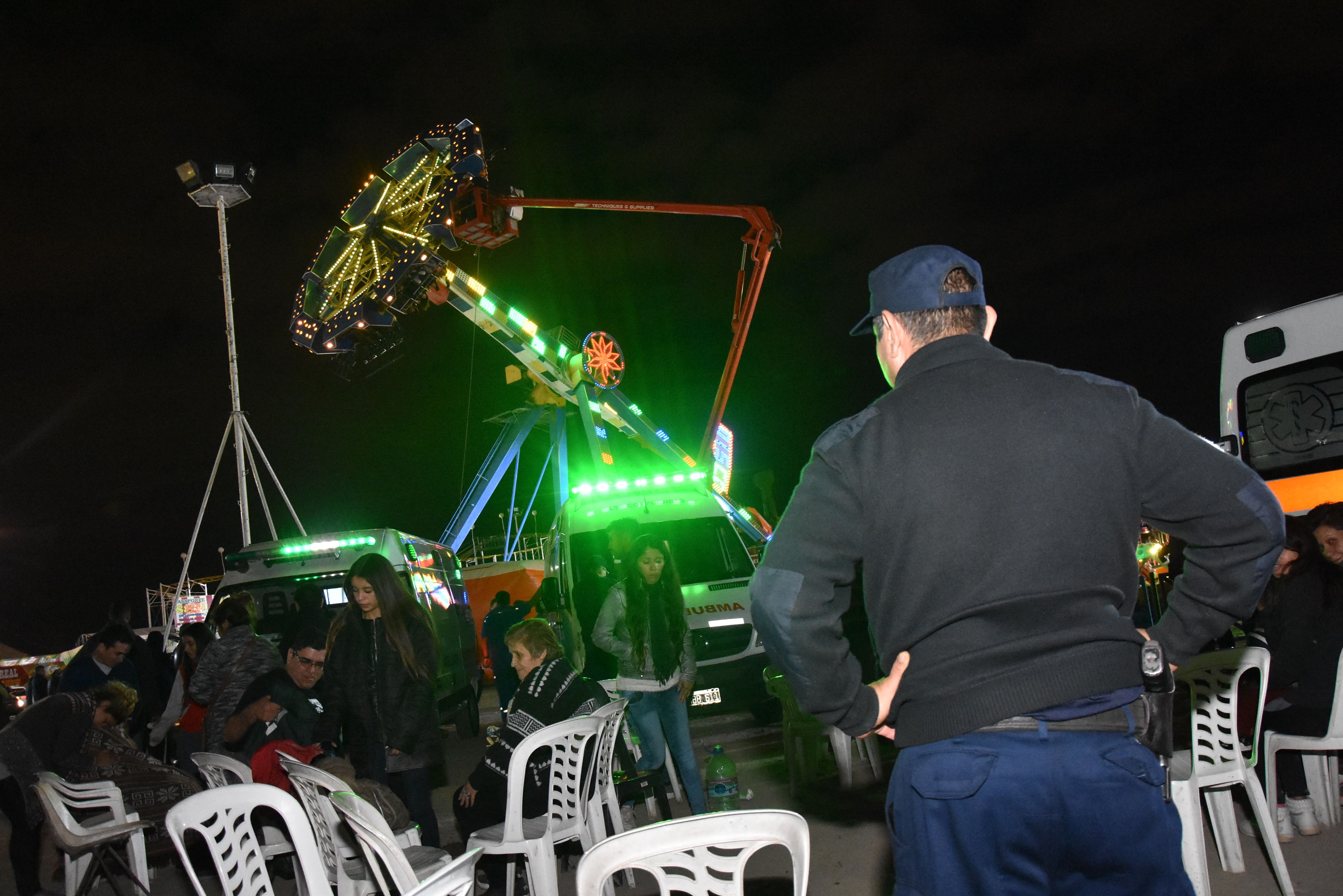 Momentos de dramatismo se vivieron anoche en el predio del Hipódromo del Jockey Club, luego de que uno de los juegos del parque de diversiones instalado allí se rompiera, dejando a 36 personas suspendidas en el aire.