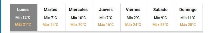 El miércoles descenderá a los 20 grados, con cielo cubierto y probabilidad de tormentas aisladas por la noche.