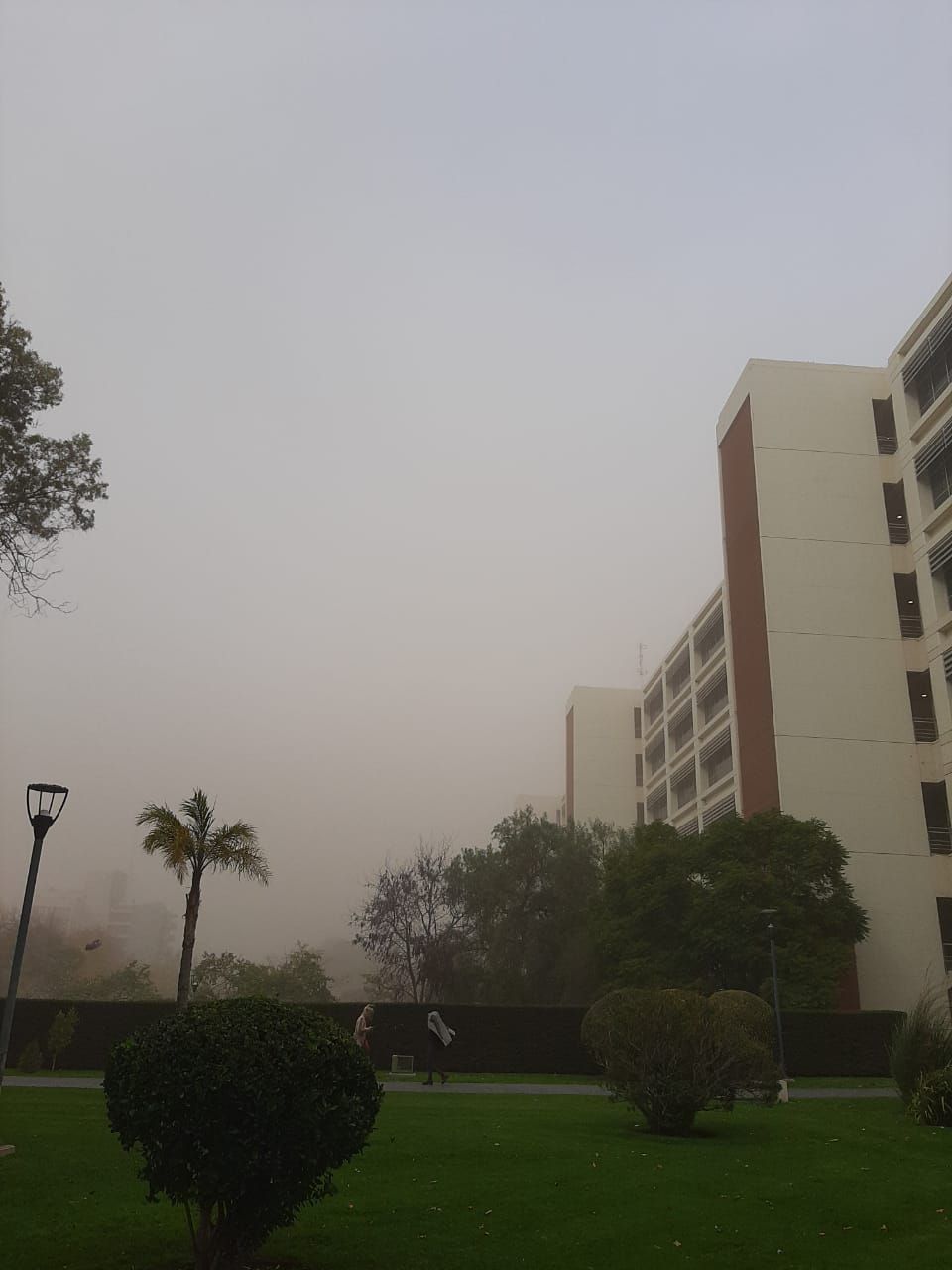 La situación se mantuvo de ese modo hasta antes de las 11 cuando, de la mano del viento Sur, una densa nube de polvo comenzó a avanzar desde los departamentos de ese sector para ir extendiéndose paulatinamente a gran parte de la provincia.
