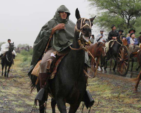 Los gauchos con más experiencia en cabalgatas no tuvieron problemas para hacerle frente a la lluvia. En los morrales llevaron ponchos de nailon que se pusieron ni bien comenzaron a caer las primeras gotas.