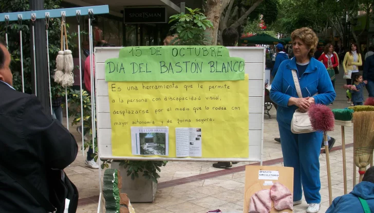 Mientras tanto, se invitaba a acercase a la gente a participar del acto, que se desarrollaba en la intersección de Tucumán y Rivadavia. Frente a un estrado desde donde hablarían profesores y personas con capacidades especiales, que narrarían su experiencia, se instalo una pequeña muestra de elementos que se utilizan en la educación de personas no videntes, y un pizarrón en el que se leían consejo para ayudar a hombre y mujeres con este problema en su andar por la ciudad.