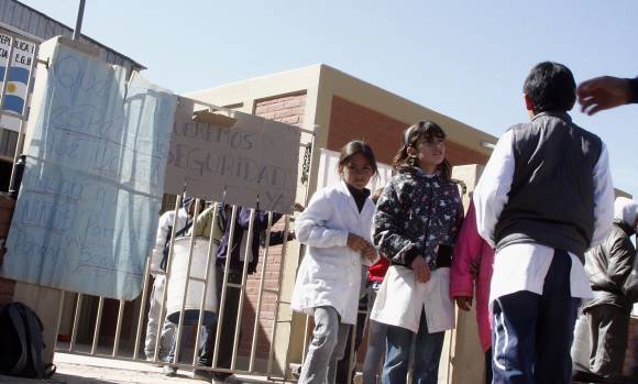 Entre las voces de reclamo por un puesto policial, custodia permanente por las noches y de cansancio por los robos reiterados, hubo una frase que sobresalía: ‘No van a entregar las netbooks hasta que la escuela esté segura‘, dijo el supervisor escolar Julio Bastías. Esta afirmación corrió como reguero de pólvora entre padres y alumnos de la Escuela República de Chile, en Chimbas. Ayer, un grupo de 50 personas tomó el establecimiento, ubicado sobre Ruta 40, durante la mañana como medida de protesta por el último robo, ocurrido este miércoles, y en el que se llevaron 100kg. de leche, entre otros alimentos.
