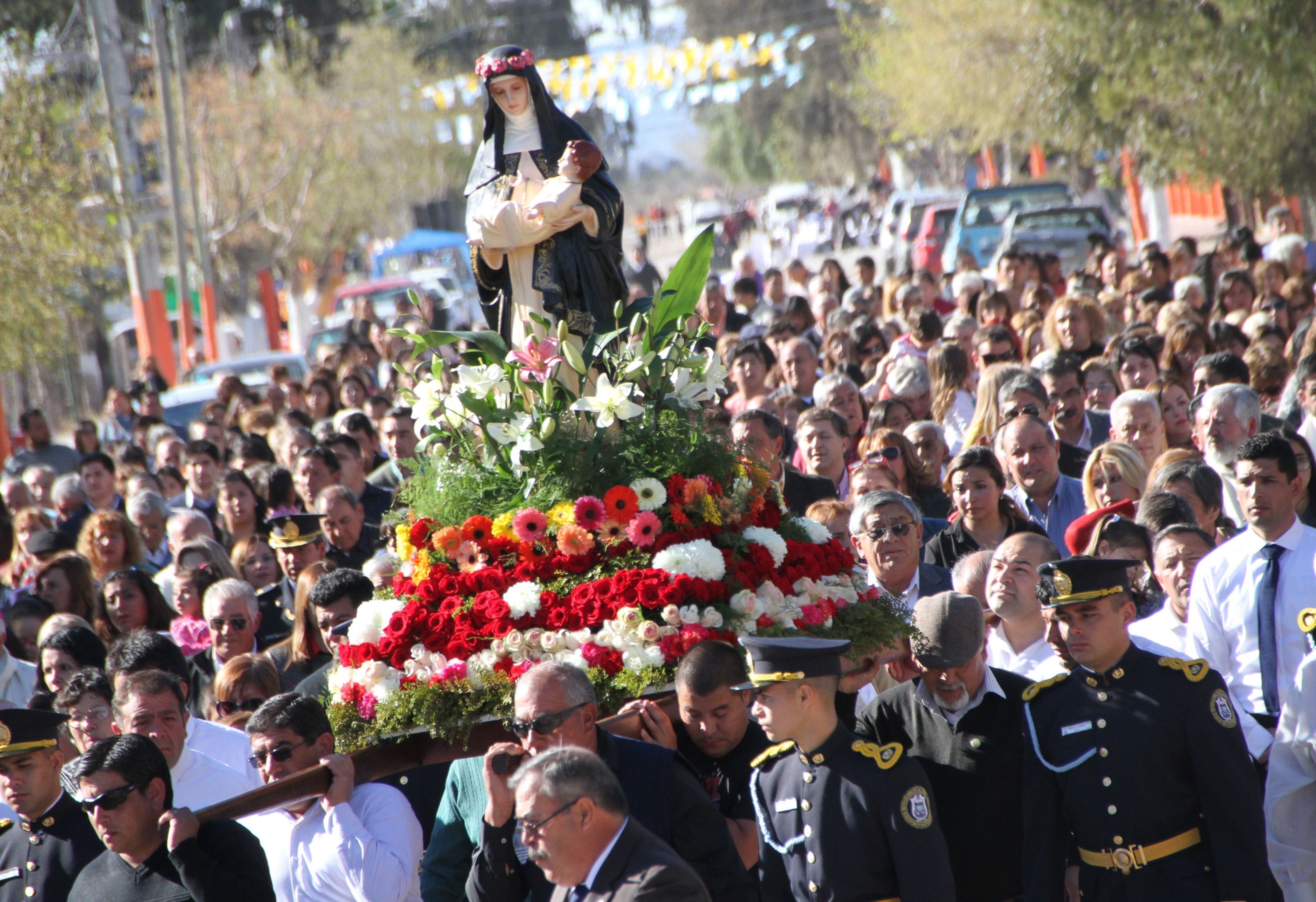 Festejo religioso. En los últimos años el Sol hizo que la procesión en honor a Santa Rosa se viviera con mucho calor, en 25 de Mayo.