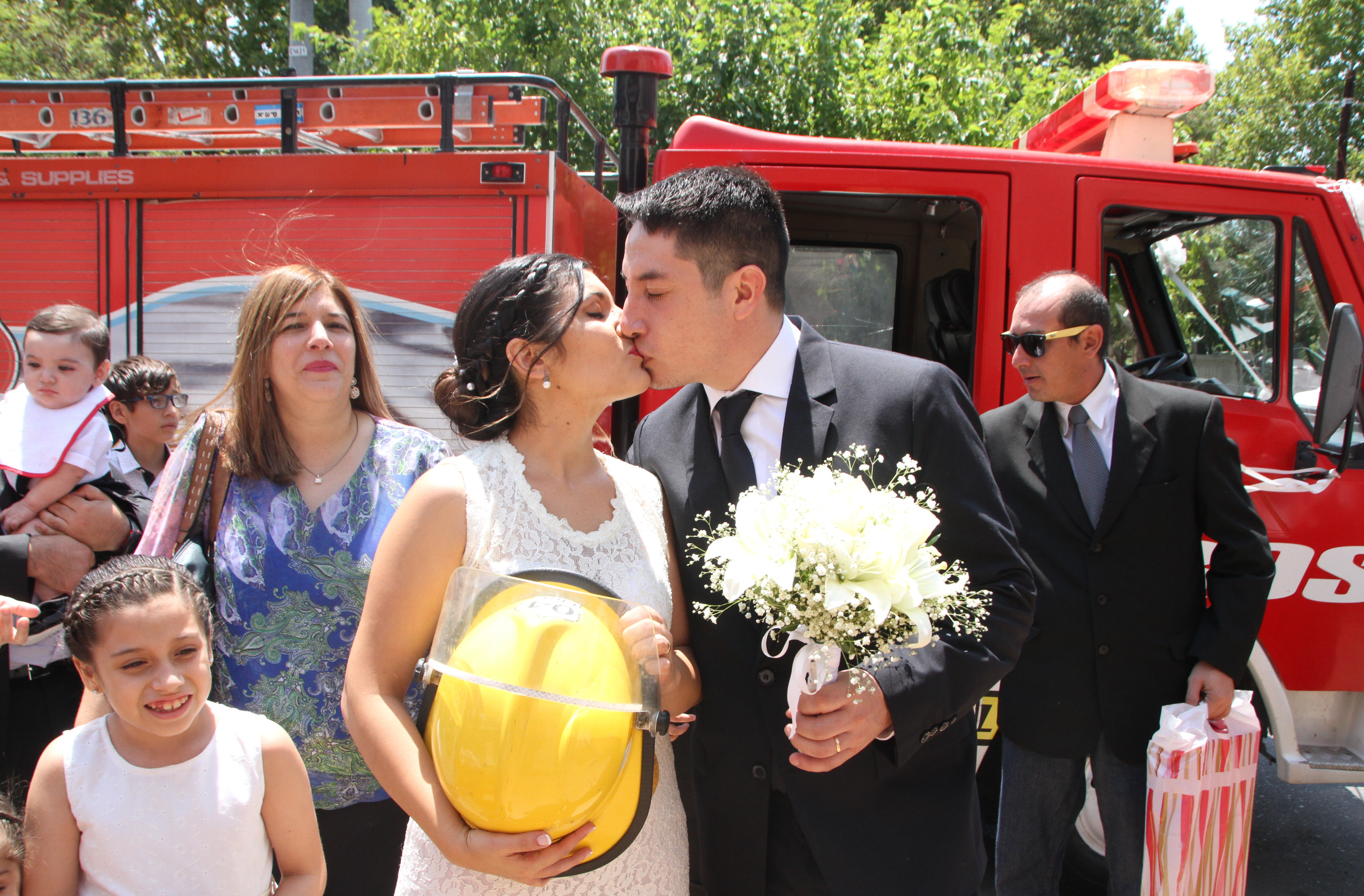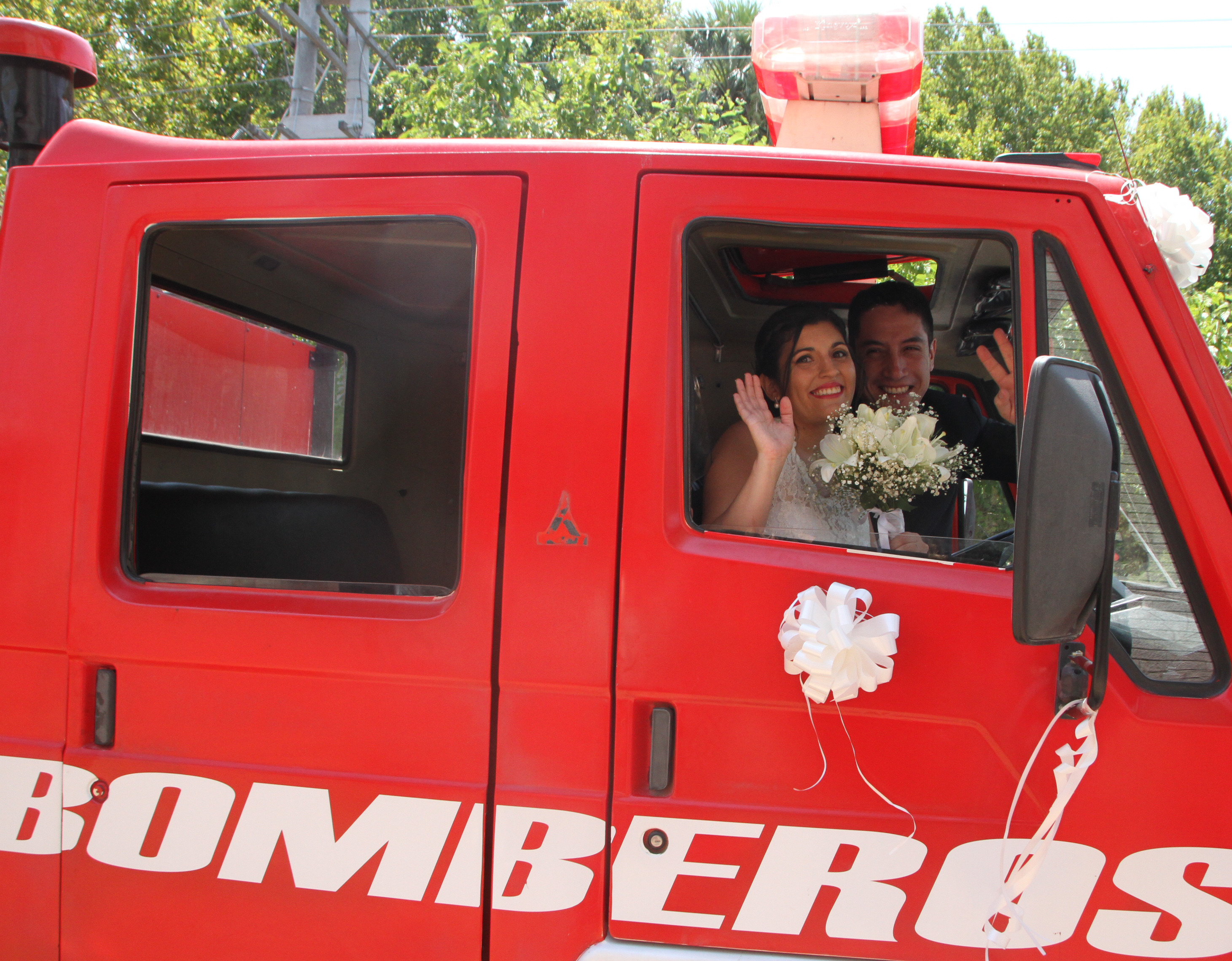 Emiliana ama ser bombera y por eso, desde que empezó a organizar su boda pensó que algo de su trabajo debía ser parte del festejo. “No podía estar de uniforme, ni traje de gala de bombero, porque soy la novia y soñaba también con entrar de blanco. Entonces con mis compañeros se nos ocurrió que nos movilizáramos en la autobomba”, dijo y contó que los demás bomberos fueron los que le pusieron enormes moños y cintas blancas al camión para decorarlo y que quedara a tono con el festejo.