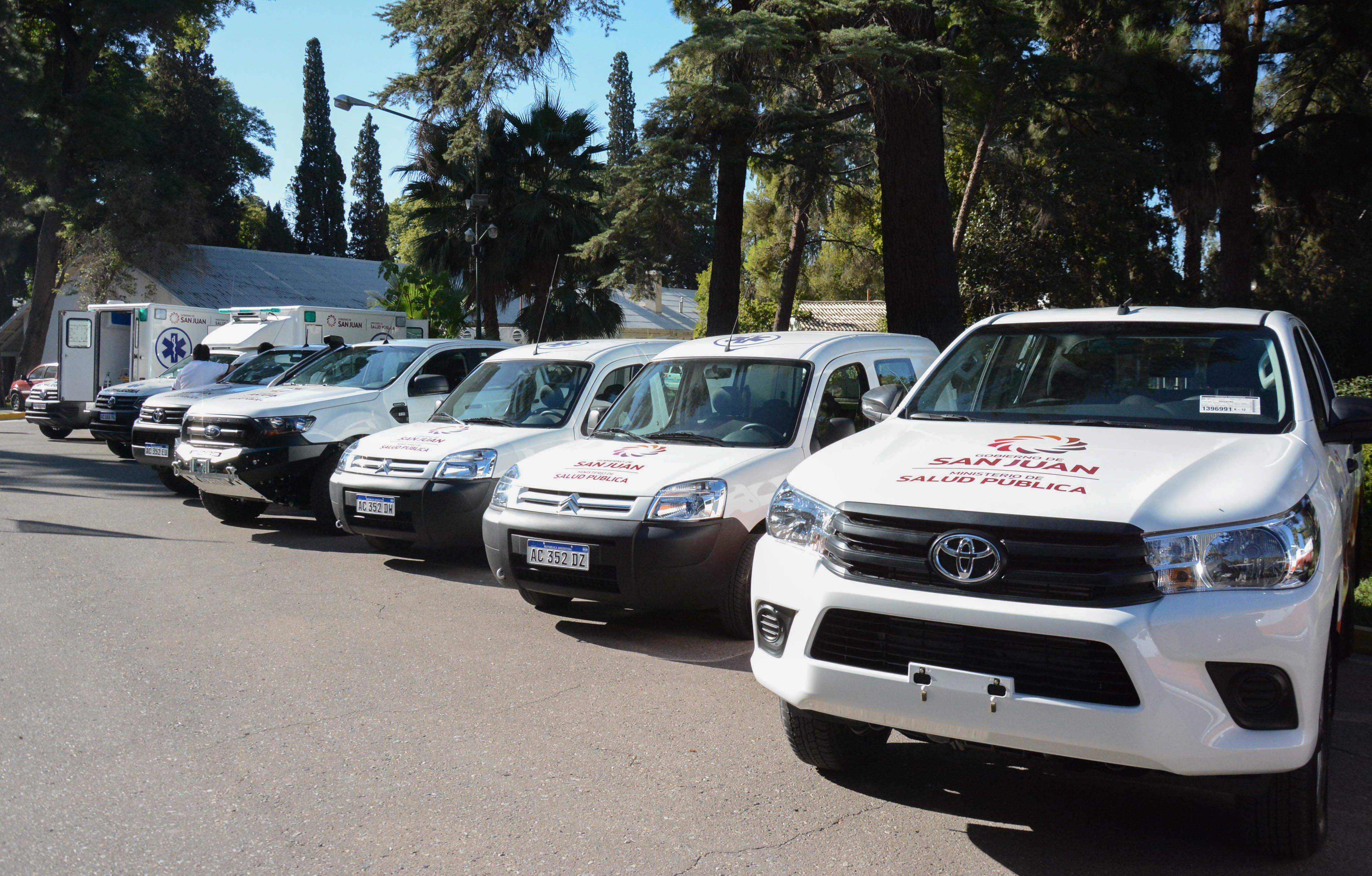 Recibieron 1 ambulancia respectivamente los hospitales César Aguilar -Caucete-, Alejandro Albarracin -Valle Fértil- y Aldo Cantoni. Además, se destinó una movilidad para el Programa Provincial de Control de Vectores (Chevrolet S 10), Microhospital de San Martín (Toyota Hilux cabina simple), Ventura Lloveras -Media Agua- (Toyota doble cabina), Servicio de Nutrición (Berlingo), Centro de Salud Báez Laspiur -Chimbas- (Berlingo), Zona Sanitaria V (Berlingo) y el Puesto Sanitario Santa Rosa, de 25 de Mayo (una camioneta Ford 4×4).