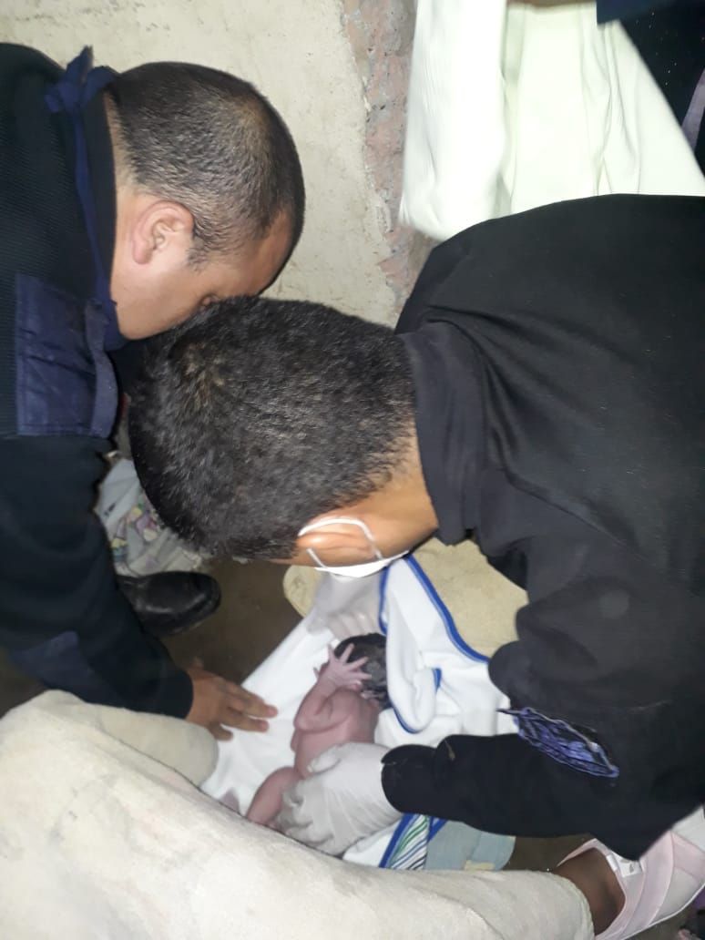 Luego del parto, los efectivos desinfectaron un broche con alcohol y lo utilizaron para presionar el cordón umbilical, después la cubrieron con una manta.