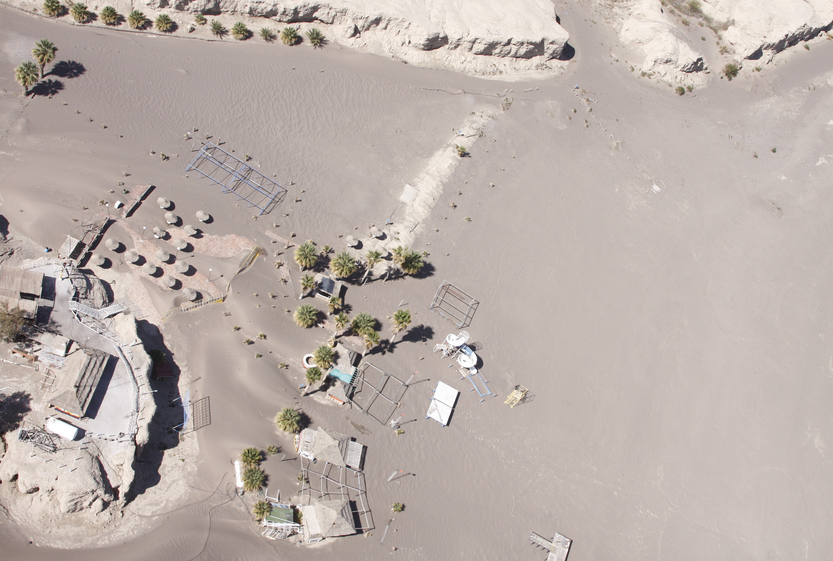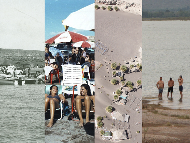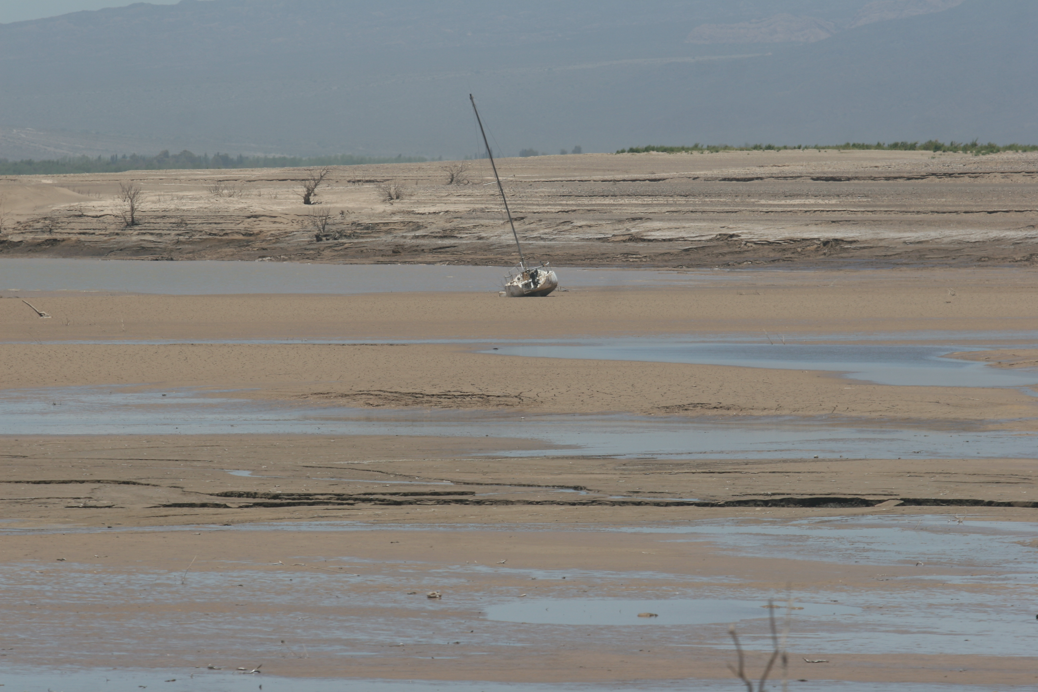 Por la falta de agua, el sector que había estado cubierto de agua, volvió a transformarse en un desierto. Frente a los clubes, el agua bajó dejando ver el barro, que luego se transformó en polvillo.