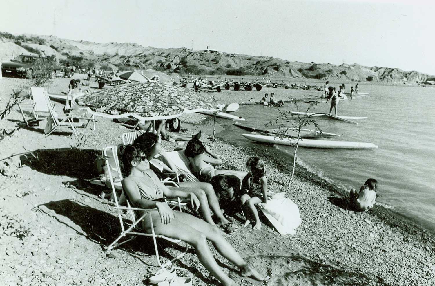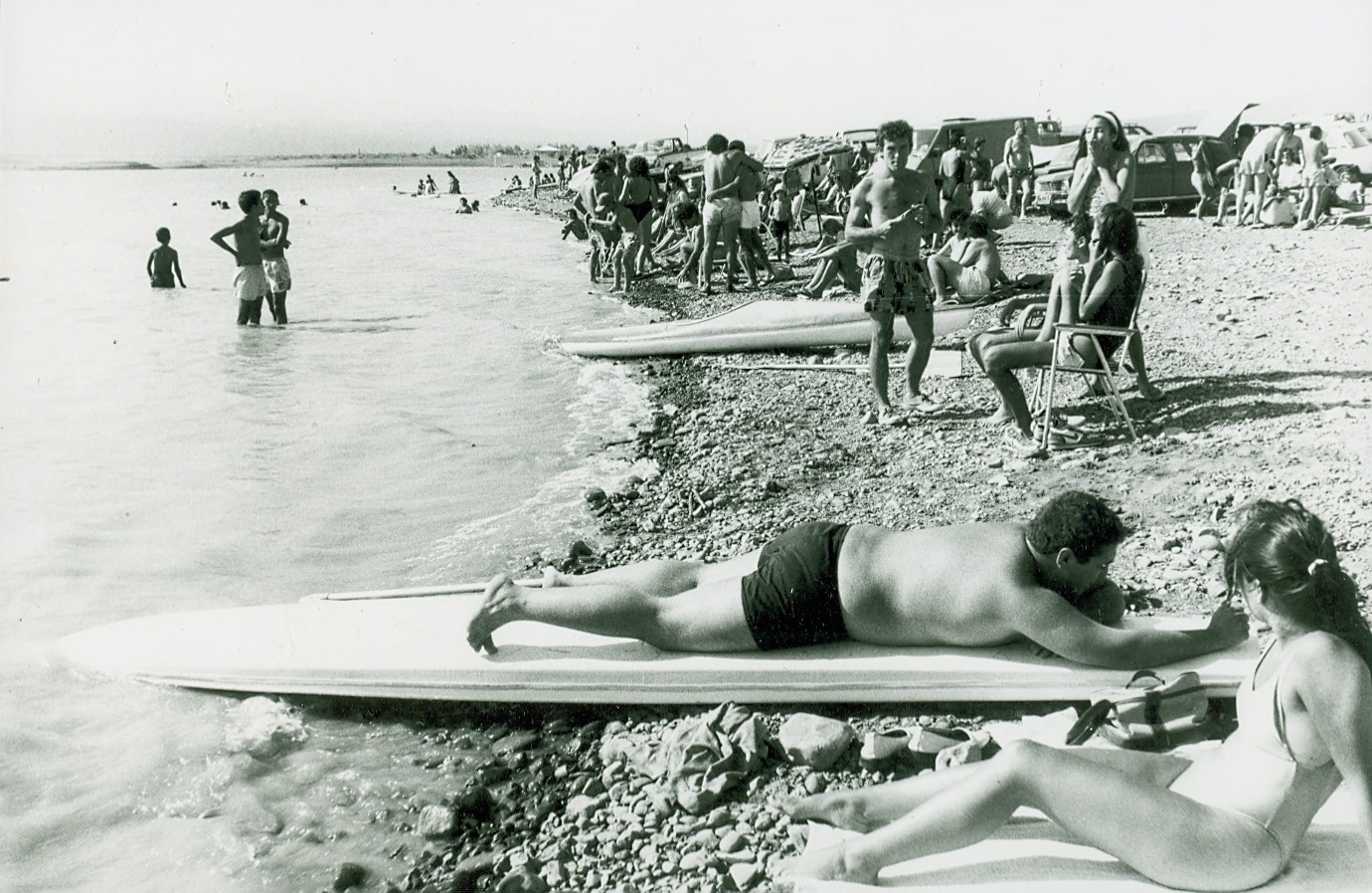 Grupos de familias y amigos copaban la ruta de acceso al espejo de agua en enero de 1992, cargados con conservadores, reposeras y sombrillas.