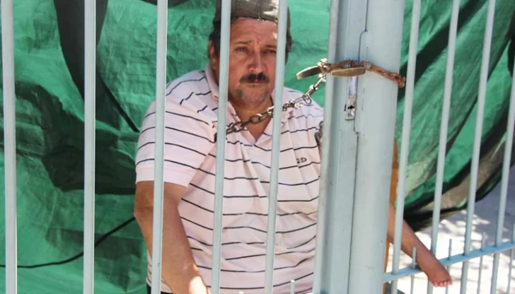 San Juan.- Juan José Gil, un hombre discapacitado que vive gracias a una pensión, tomó una dramática determinación en la mañana de hoy. Fue cuando decidió encadenarse al portón de la casa que ocupa para no ser desalojado.