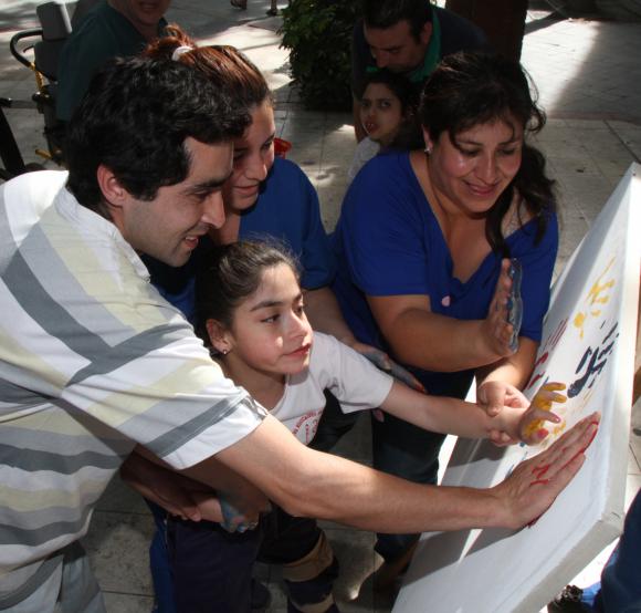 La actividad fue exitosa ya que a pesar de que en un principio costó que la gente se animara a participar, después hasta hicieron un gran círculo para ver qué es lo que los chicos estaban haciendo. Algunos hasta sostuvieron en sus brazos para poder acercarlos hasta el caballete, en donde estaba la pintura, porque solos no podían hacerlo. También participaron las familias de los discapacitados, quienes pintaron sus manos para marcarlas sobre el fondo blanco.